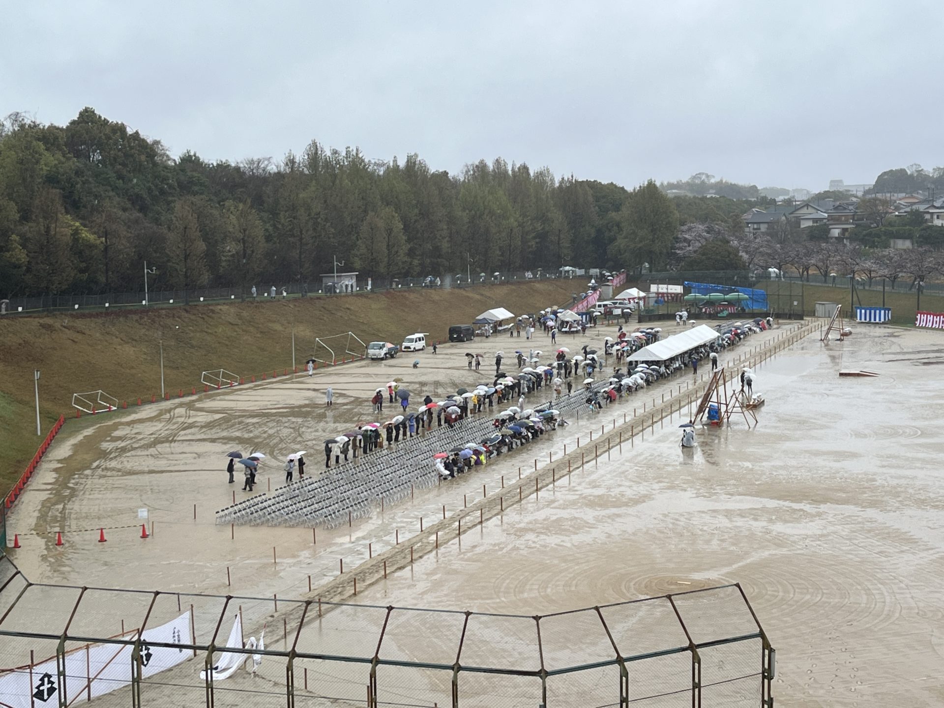 同じ時間に用事が入っていたので残念ながら見ることはできませんでしたが、13時の開始前にちょっと覗きにいったところ、30分前で雨が降っているにも関わらず結構な人出でした。